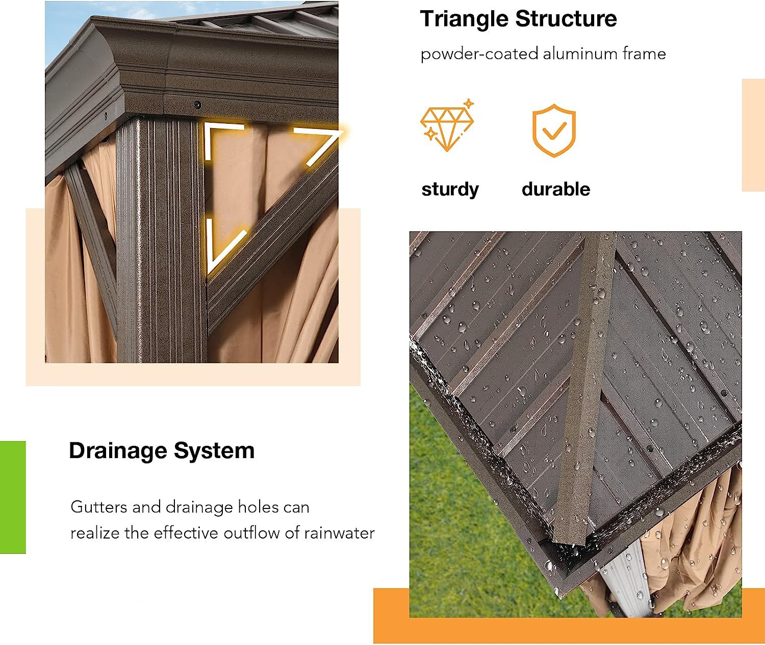 [Worry-free Warranty]: 5 years for hardtop roof, 3 years for curtain and netting, 1 year for frame construction from the date of purchase and friendly customer service. The classic pyramid design of the outdoor pergola gazebo makes it perfect for gardens, backyards, parties, picnics, BBQs and more.
