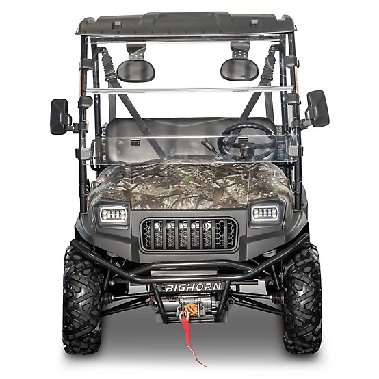 Designed for the farm, ranch, trail, and backwoods, the Bighorn Explorer 400 4x4 side by side UTV is easy to handle, rides smooth, and built to last. With 26 horsepower from its EFI liquid-cooled engine, the Explorer 400 can reach a top speed of 40 MPH. You can feel confident taking on any task and terrain with the Explorer 400's 2-speed transmission, independent suspension, a 3,500 lb winch, 10" ground clearance, on demand 4-wheel drive, and rear locking differential.