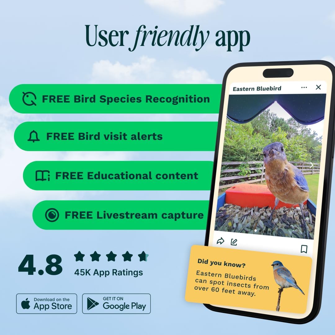 - THE ORIGINAL HD BIRD FEEDER CAMERA: Transform your birdwatching experience with this camera bird feeder and capture stunning 2K video and 5MP photos of your backyard visitors. Discover the unique characteristics of the birds at your solar bird feeder and create a special bond by naming your favorite frequent visitors with the "Name That Bird" feature.