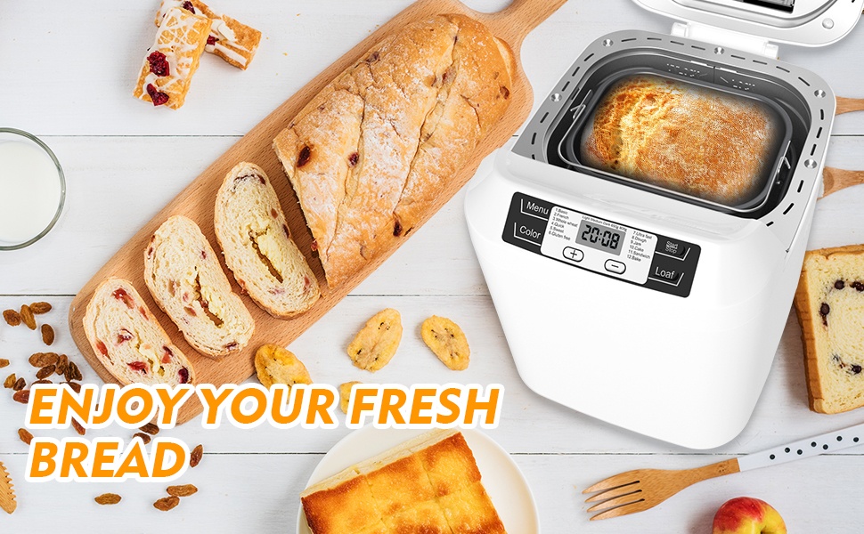 - Delcae Ousde Desgn & Ideal Gfs Choce - The bread makng machne has an Elegan Whe Exeror and compac desgn make more lke a work of ar,mach n well wh any kchen decor,perfec for any counerI's he perfec gf dea as Chrsmas gfs for women,man,your parens,your famly,and s also he bes gf choce as Thanksgvng Day,Valenne's-Moher's-Faher's DayThe gluen free bread machne wll le hem have fun makng a varey of healhy and fresh breads whenever!