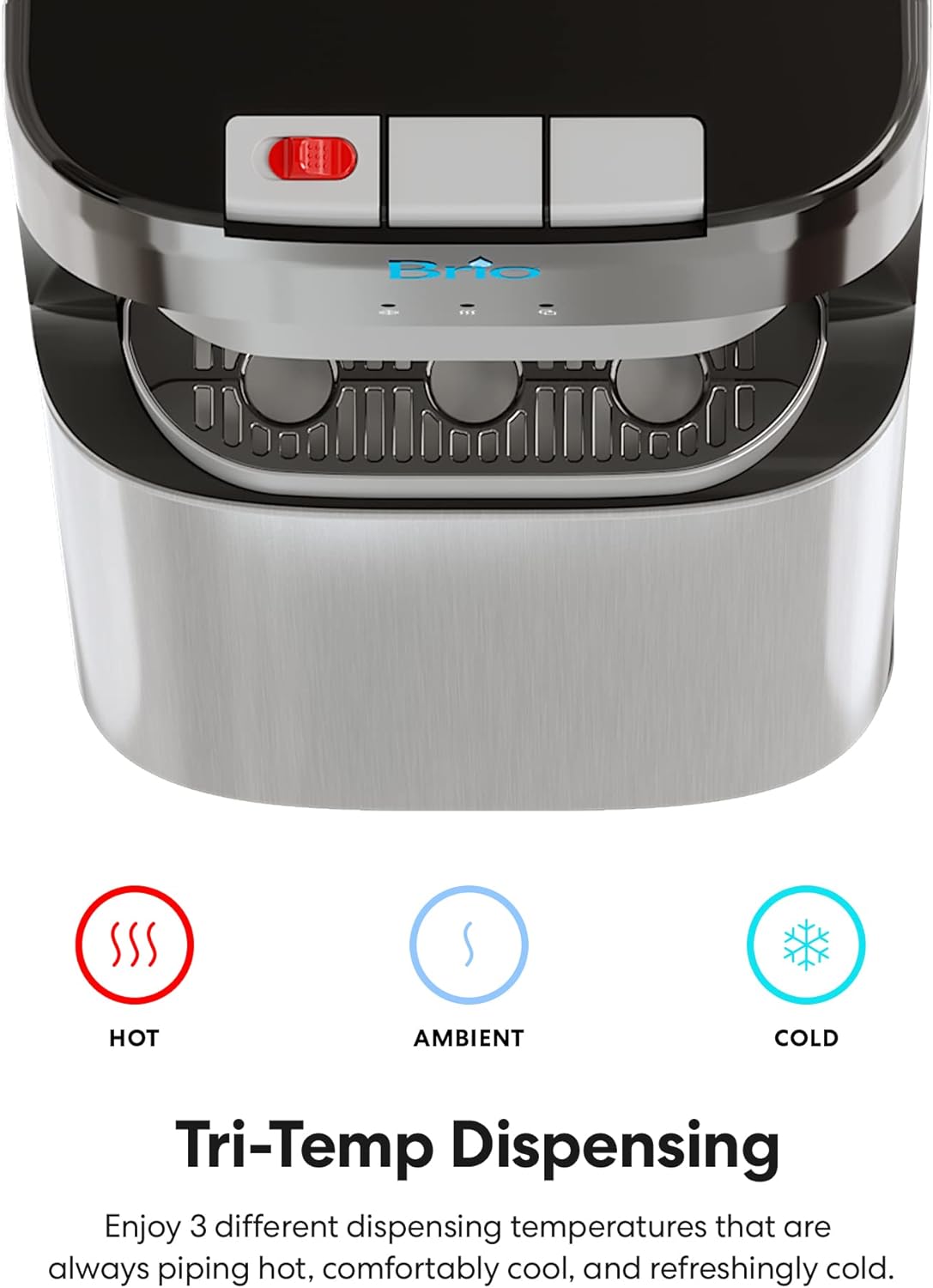 Brio Bottom Loading Water Cooler Dispenser for 5 Gallon Bottles - 3 Temperatures with Hot, Room & Cold Spouts, Child Safety Lock, LED Display with Empty Bottle Alert, Stainless Steel