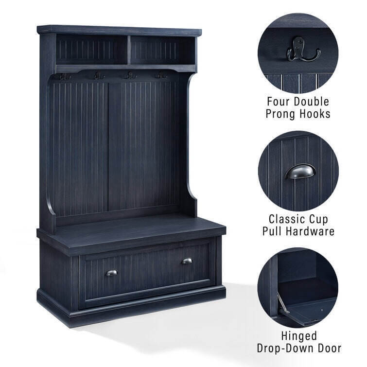 Carmel 40'' Wide Hall Tree with Bench and Shoe Storages
