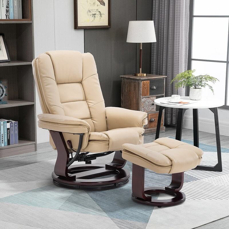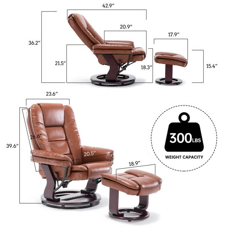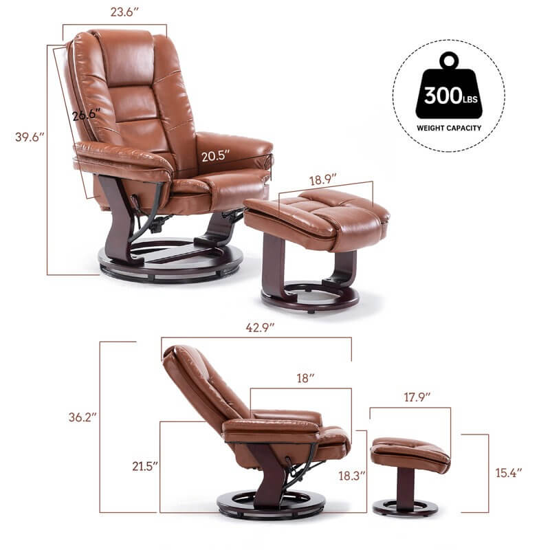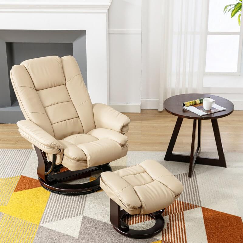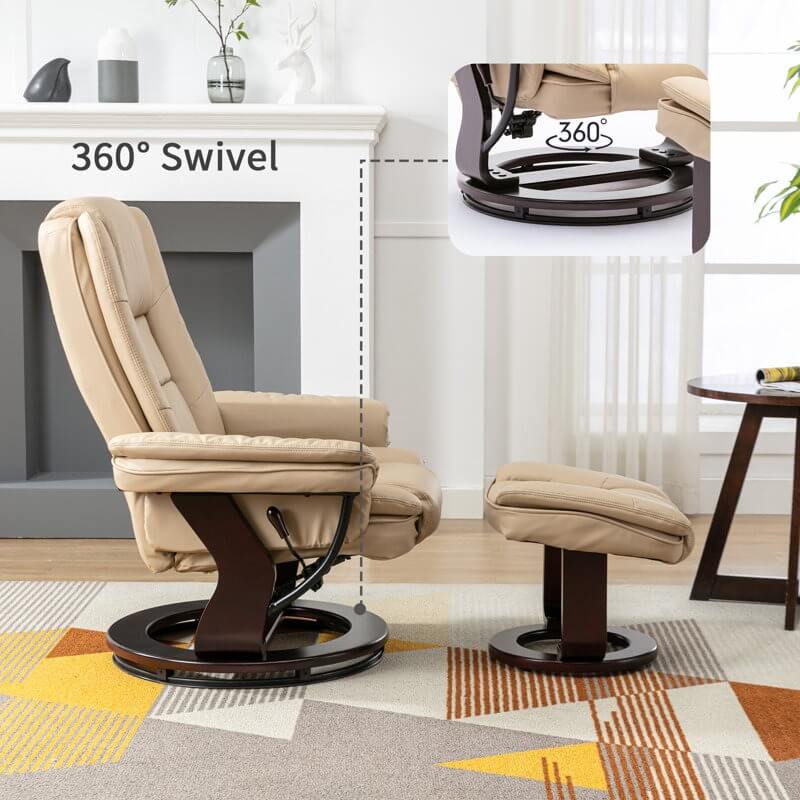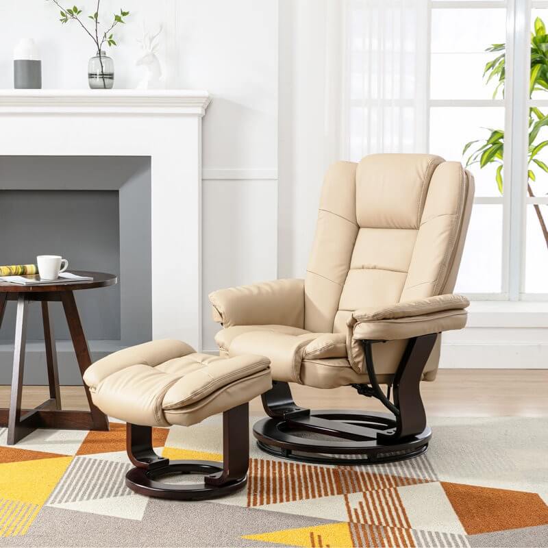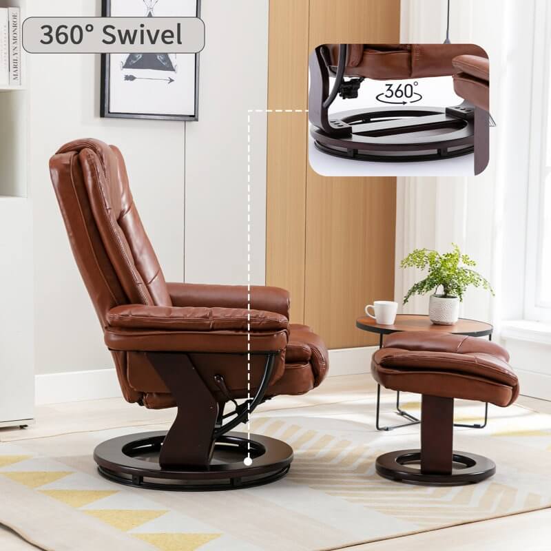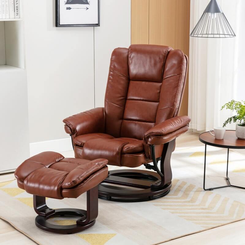 Get cozy and relaxed at the end of a long day with this LeatherSoft upholstered recliner chair and ottoman set. Designed to deliver exceptional comfort with long-lasting durability, our swivel recliner is an ultra-comfy, stylish addition to any living room, bedroom, mancave or reading space. When you want a smooth, high-end look and feel for your space, this chair and ottoman set is the way to go.
