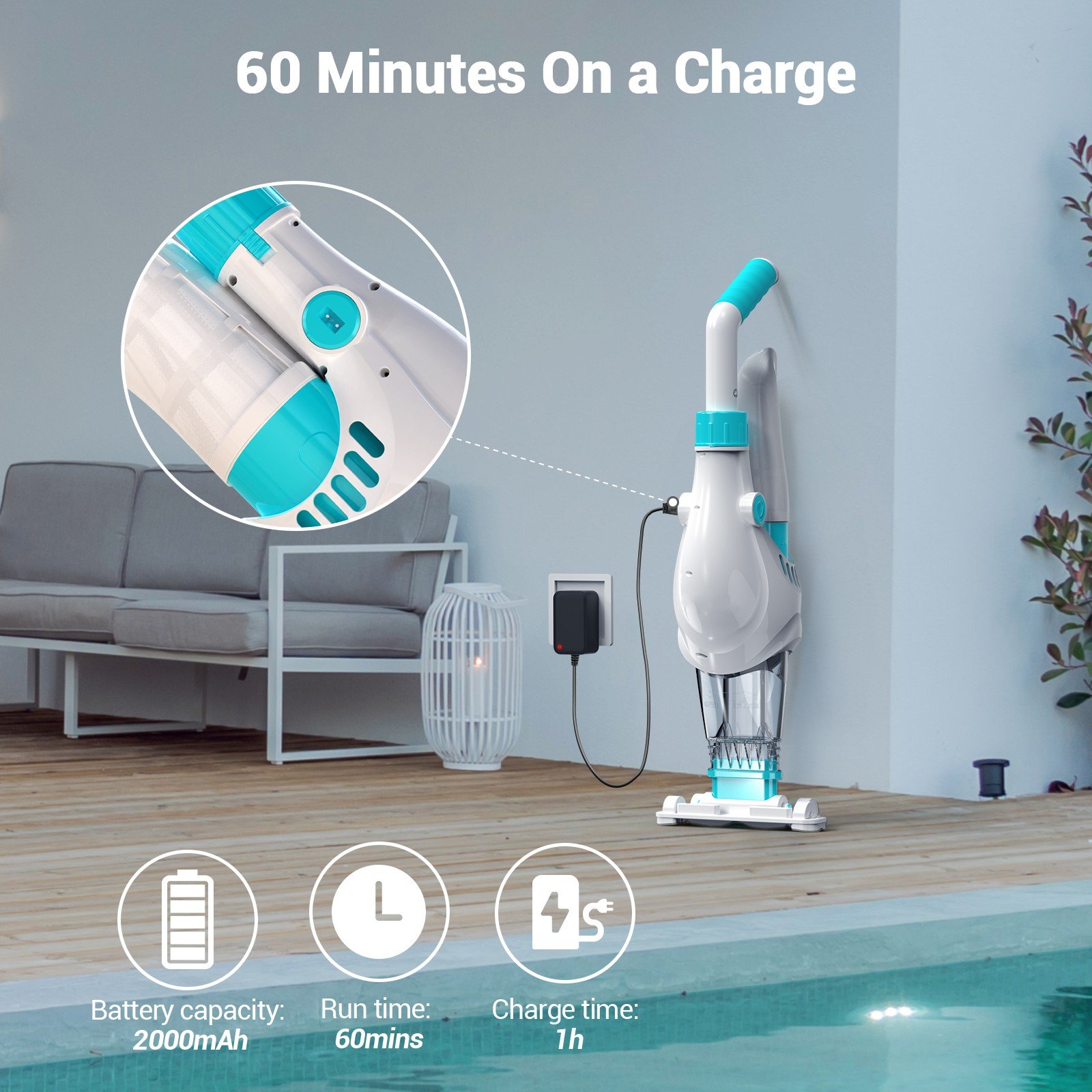 More pool coverage, less energy. The built-in 9000mAh battery is capable of cleaning up to 180 minutes. Simply drop the pool vacuum in the pool and take back your free time while it handles the cleaning.