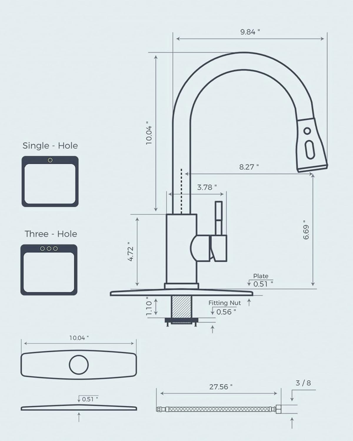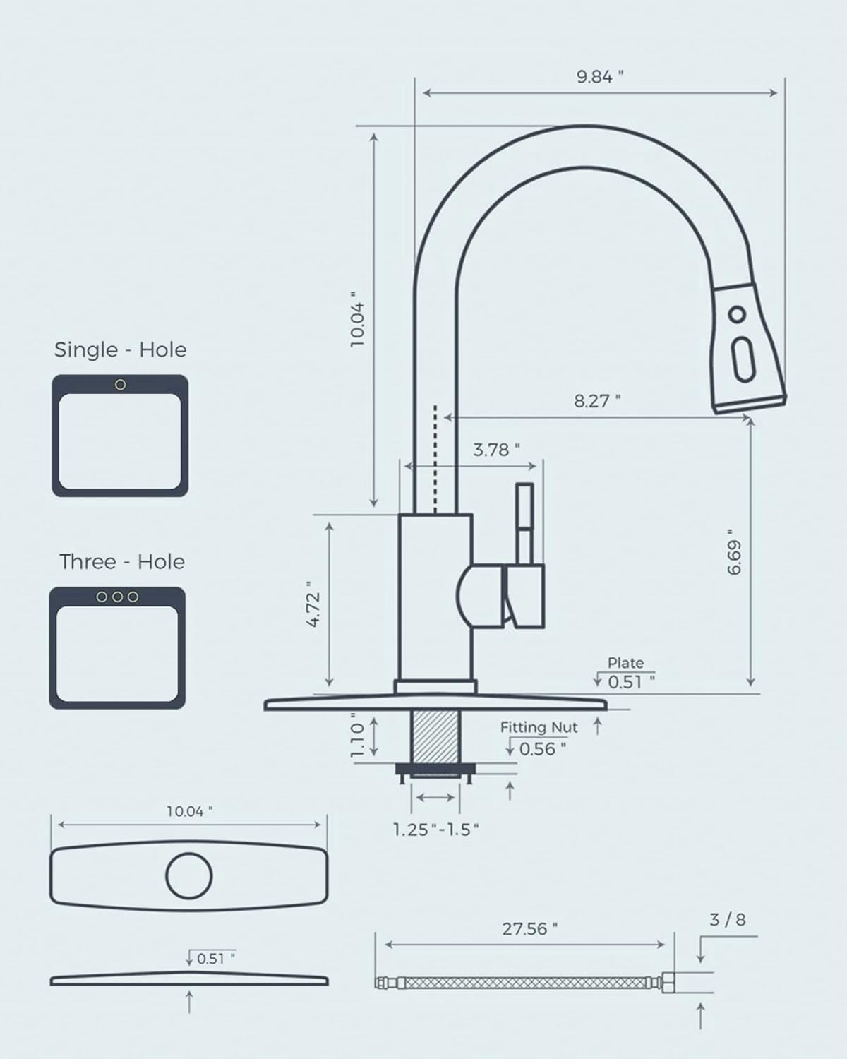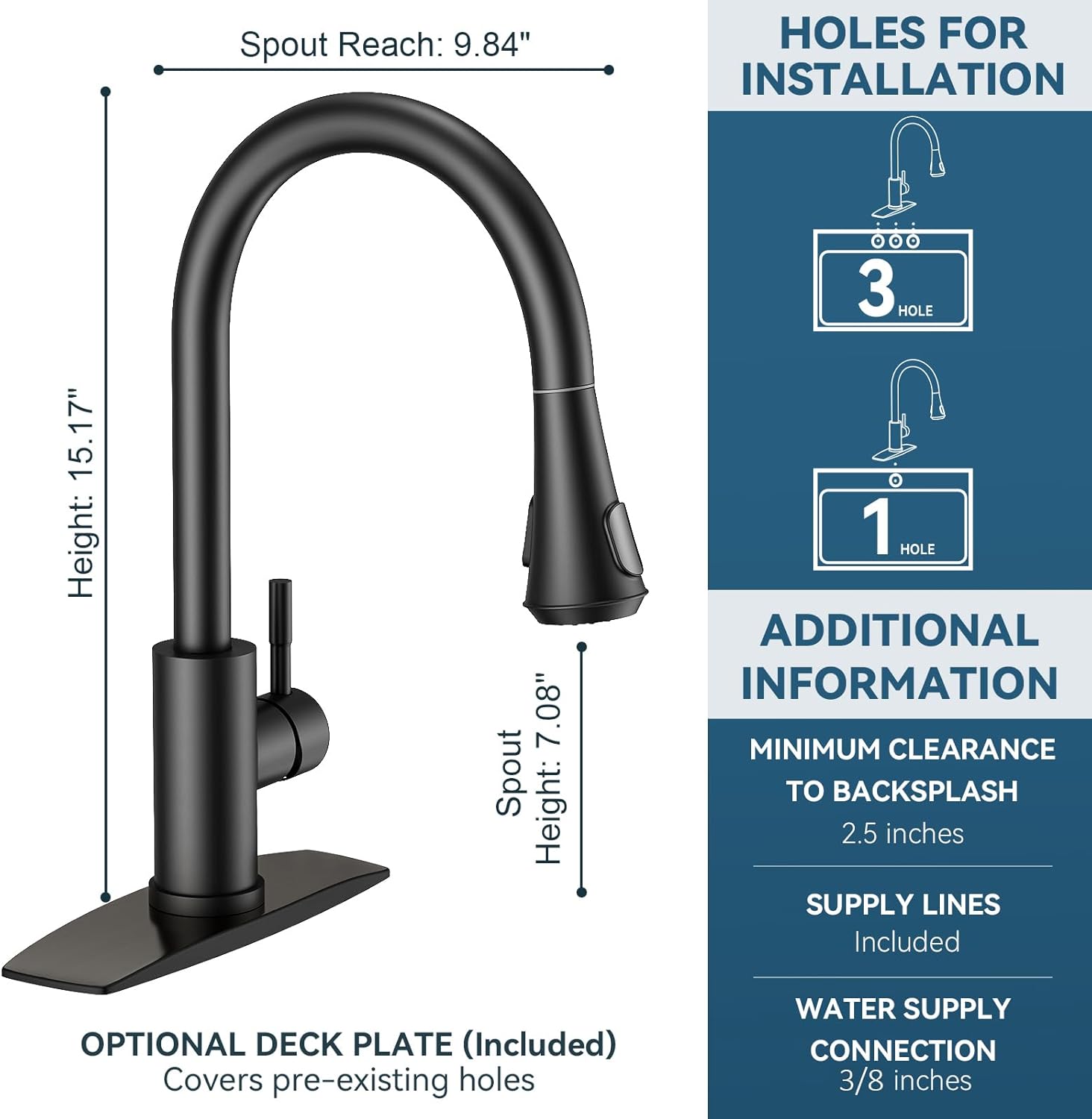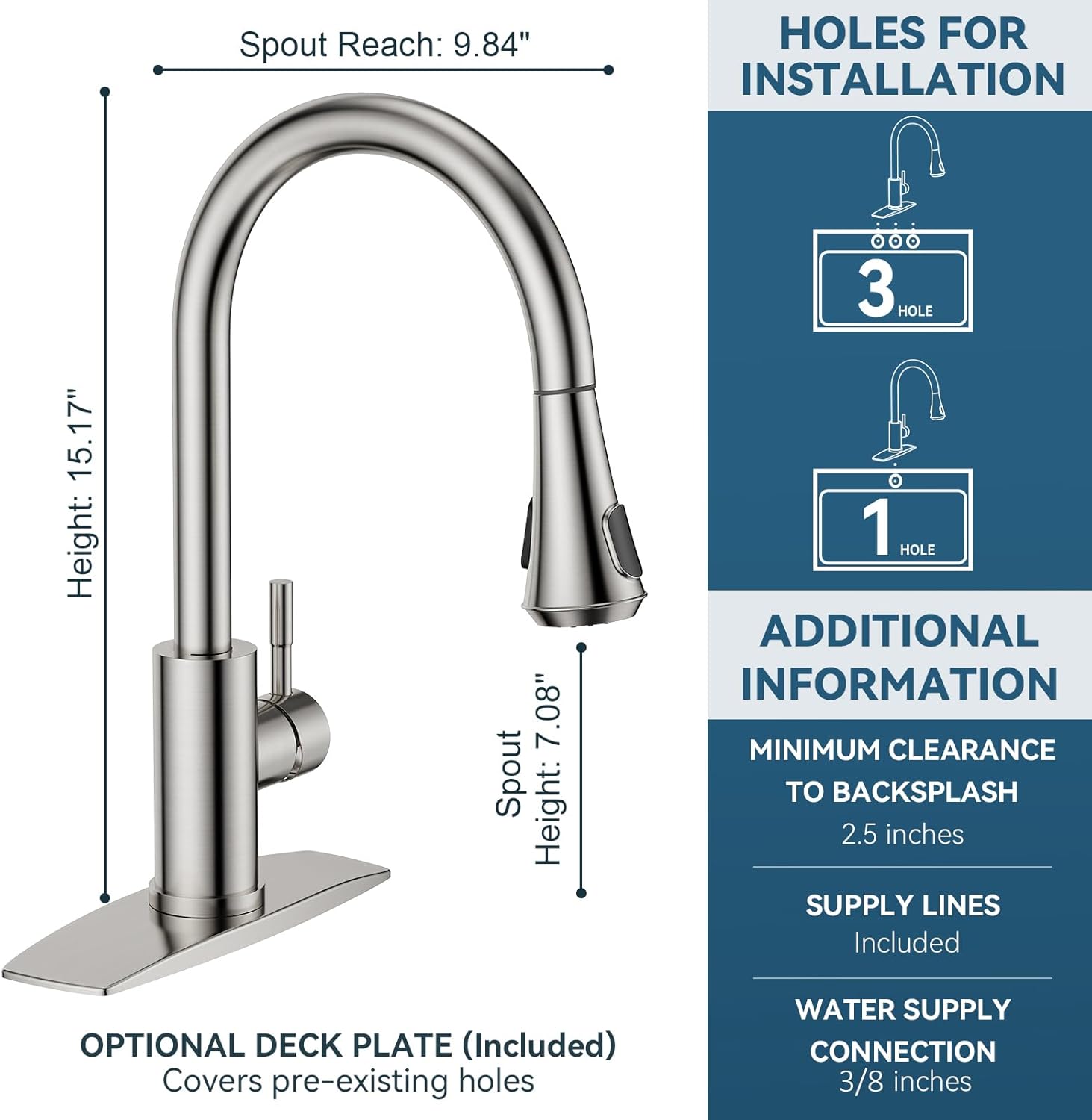 - Minutes to Install: Install the FORIOUS faucet for kitchen sink in under 15 minutes with no professional help. It features a 10-inch detachable deck plate for one, two, or three-hole sinks and includes all mounting hardware for a hassle-free setup