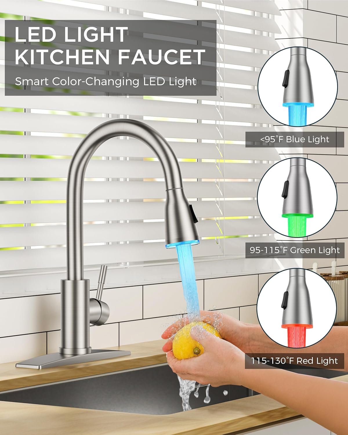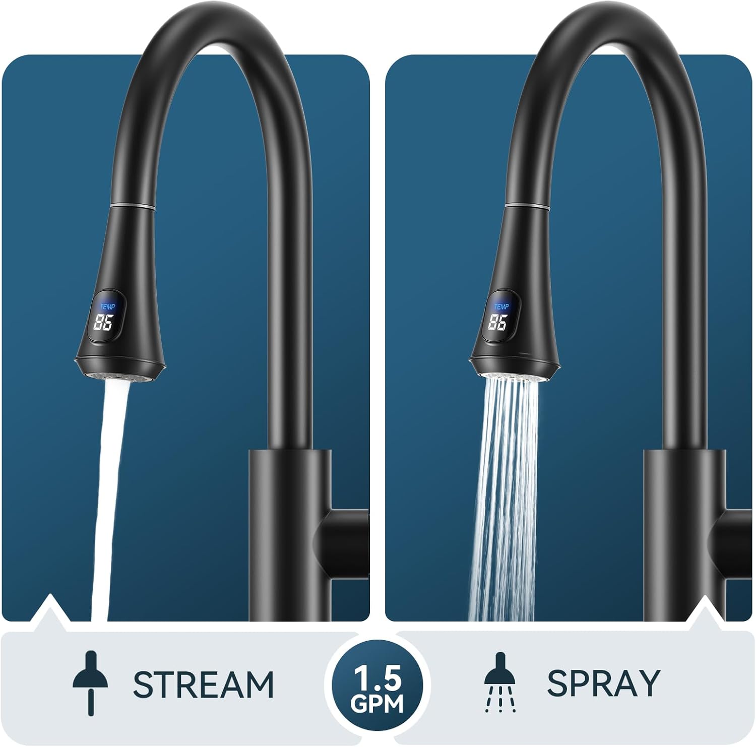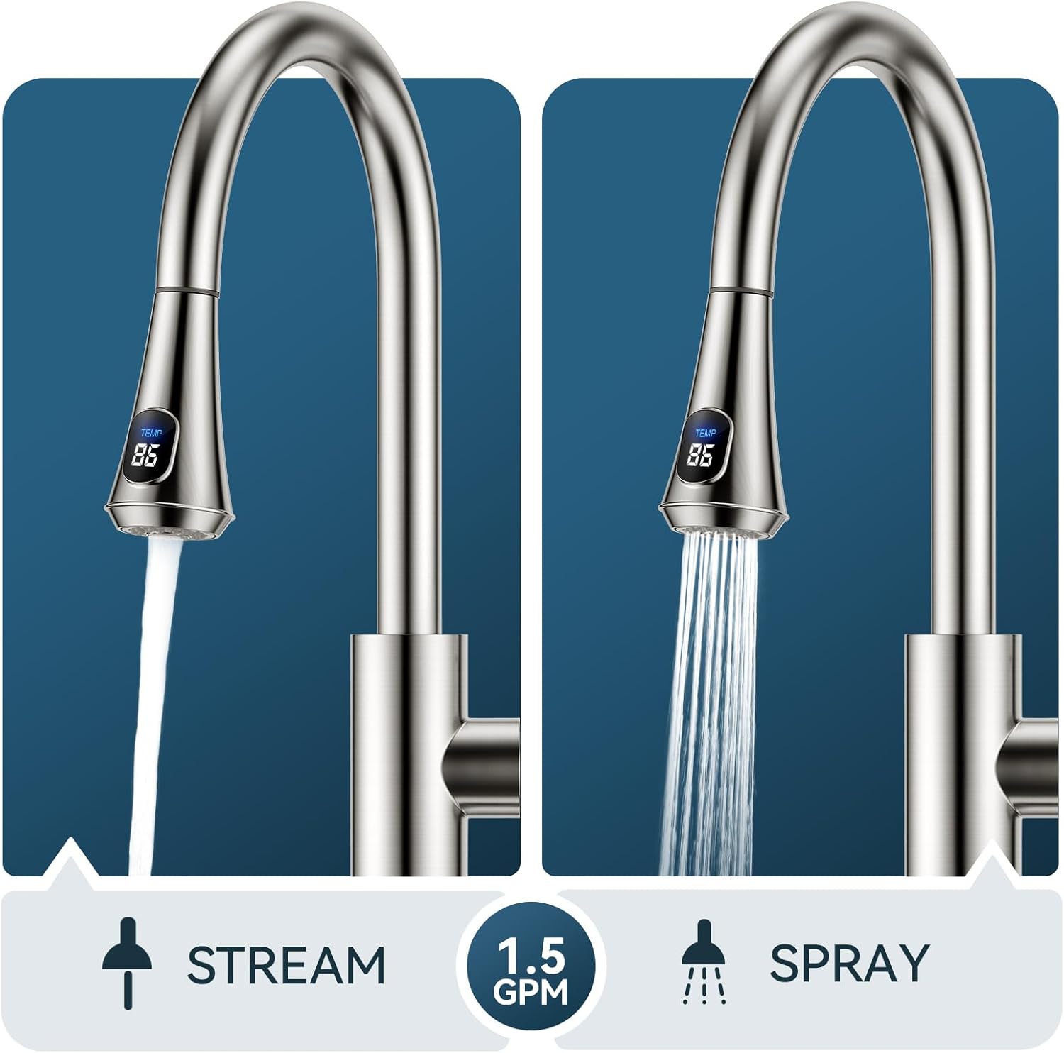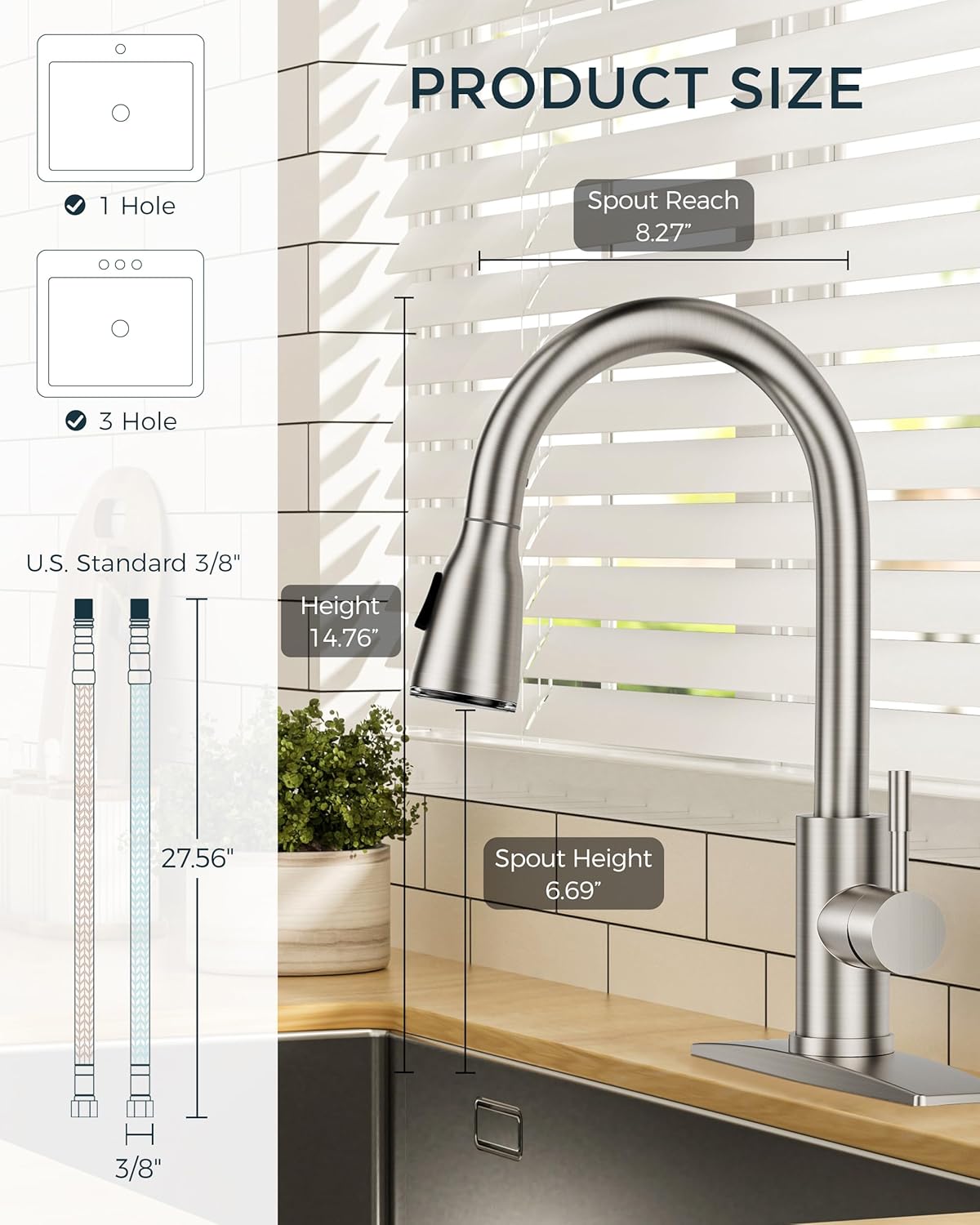- Smart Touchless Operation: The touchless kitchen faucet features advanced sensor technology for touchless control—just wave your hand to operate when the handle is open. It includes a 3-minute auto-off timer to prevent water waste to prevent water wastage