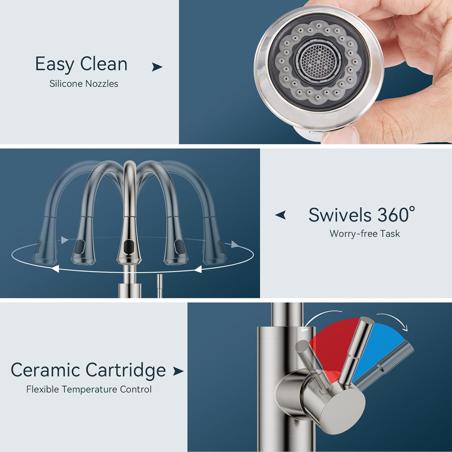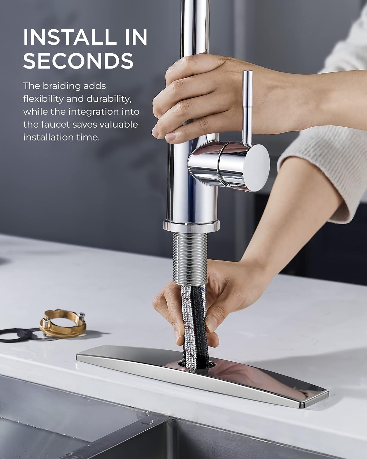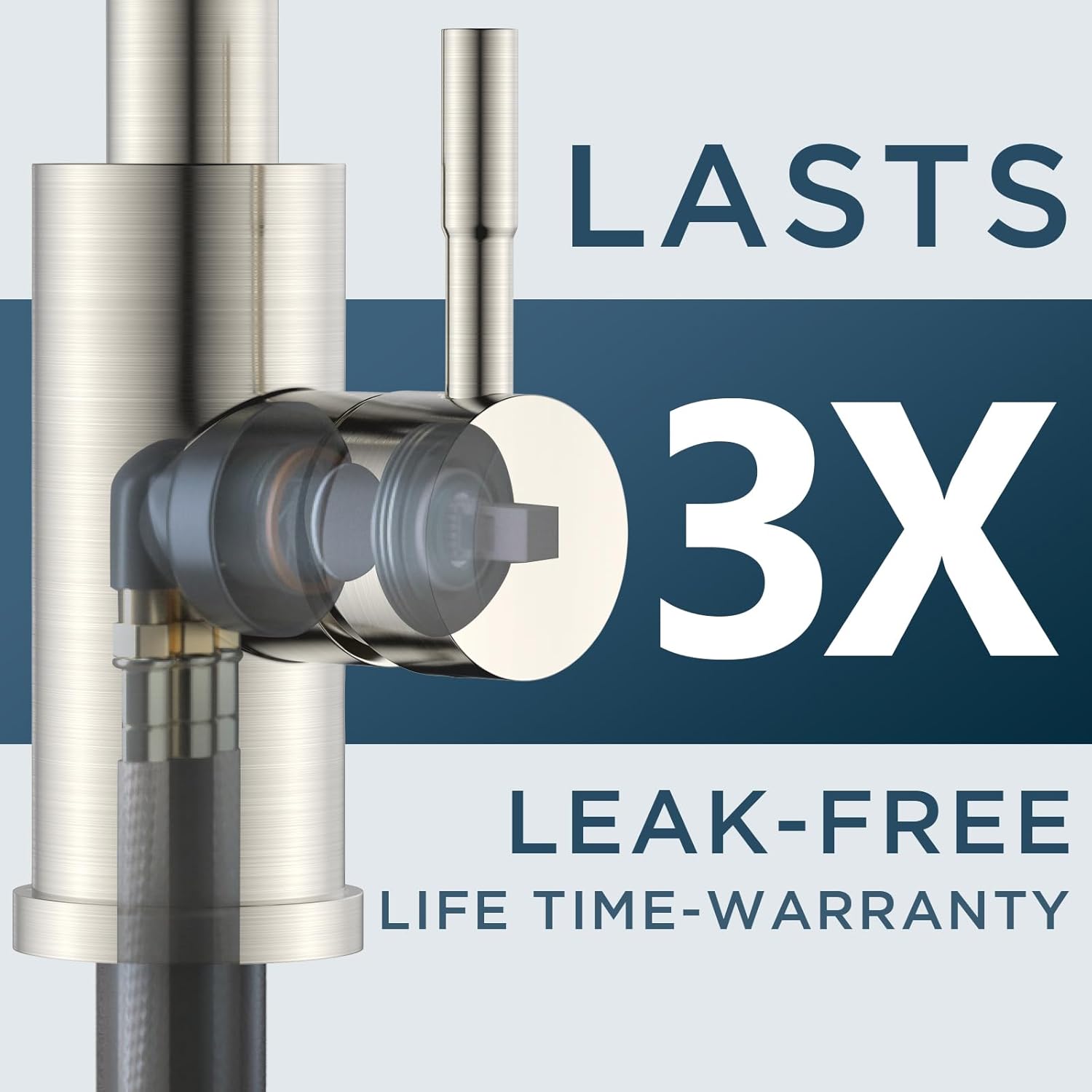 - Superior Quality: Made from lead-free SUS 304 stainless steel, this kitchen faucet features drip-free ceramic cartridges and high-temp PEX hoses that prevent leaks, ensuring durability and safety. Flow Rate: 1.8 Gallons Per Minute, saving 20% water