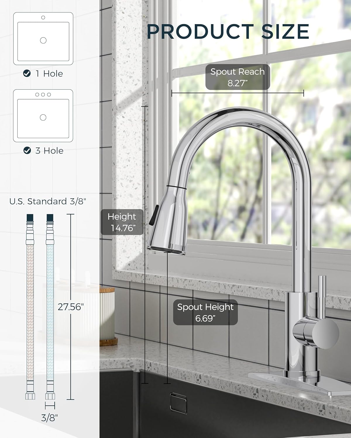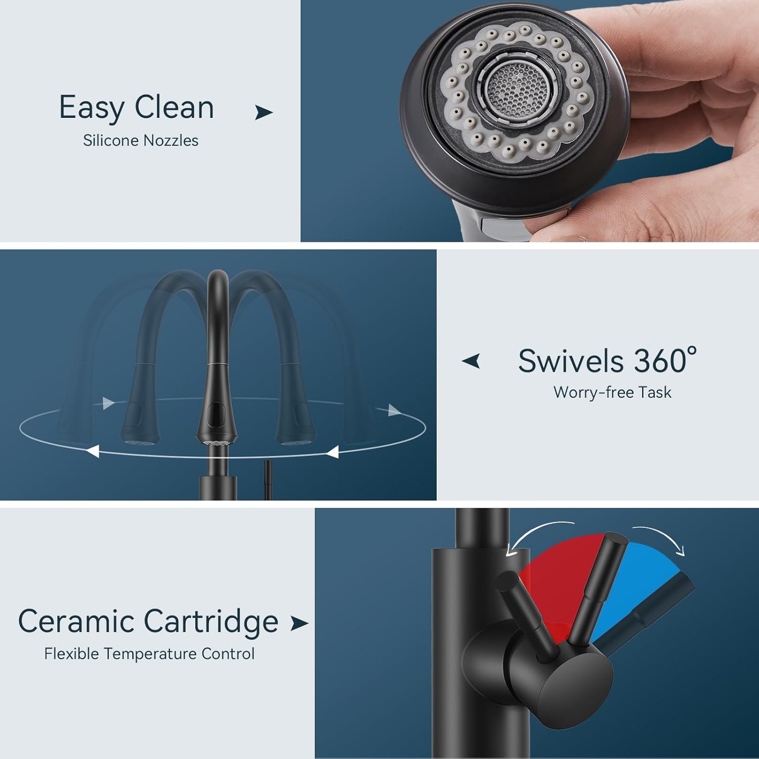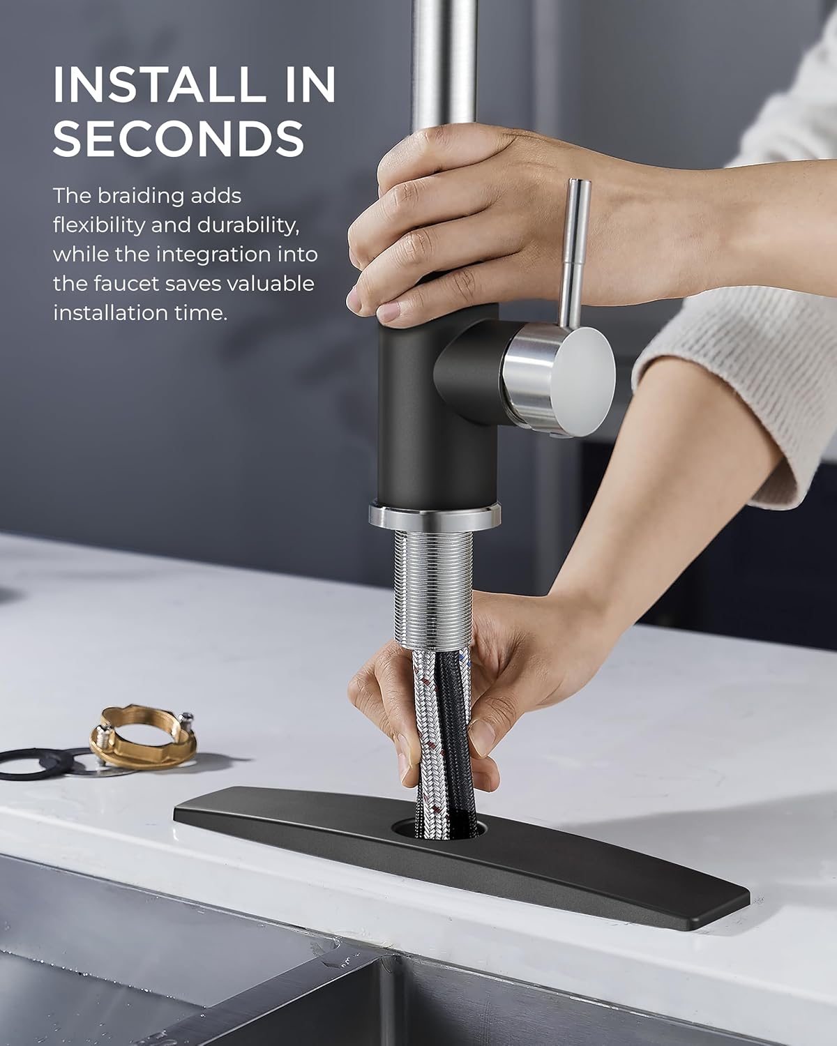 - Superior Quality: Made from lead-free SUS 304 stainless steel, this kitchen faucet features drip-free ceramic cartridges and high-temp PEX hoses that prevent leaks, ensuring durability and safety. Flow Rate: 1.8 Gallons Per Minute, saving 20% water