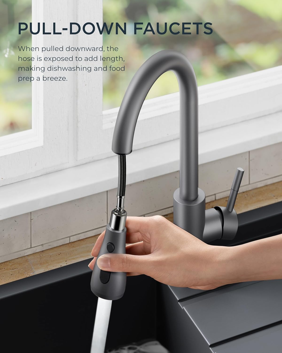 - Efficient and Simple Cleaning: The pull down kitchen faucet boasts a five-layer nanotechnology finish, resisting fingerprint and spots, and easy cleaning with a damp cloth for a tidy look — A reliable, cost-effective design