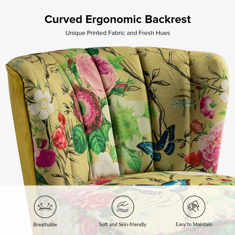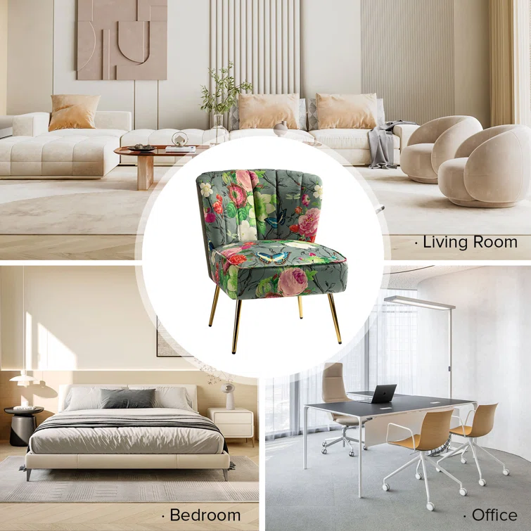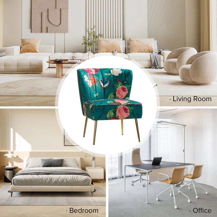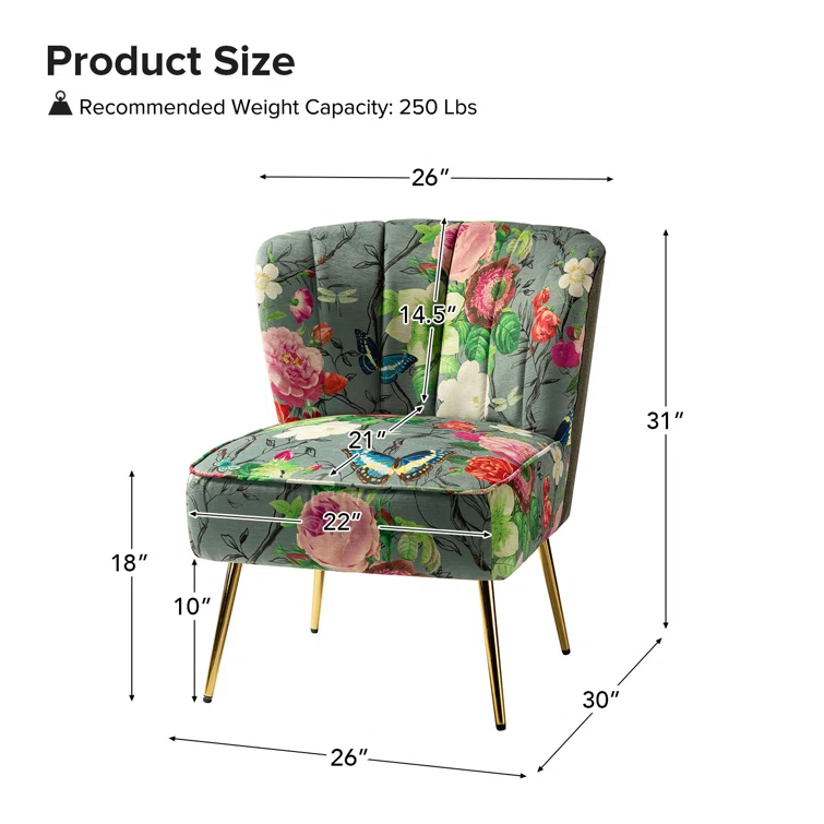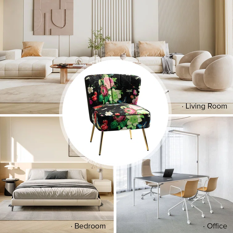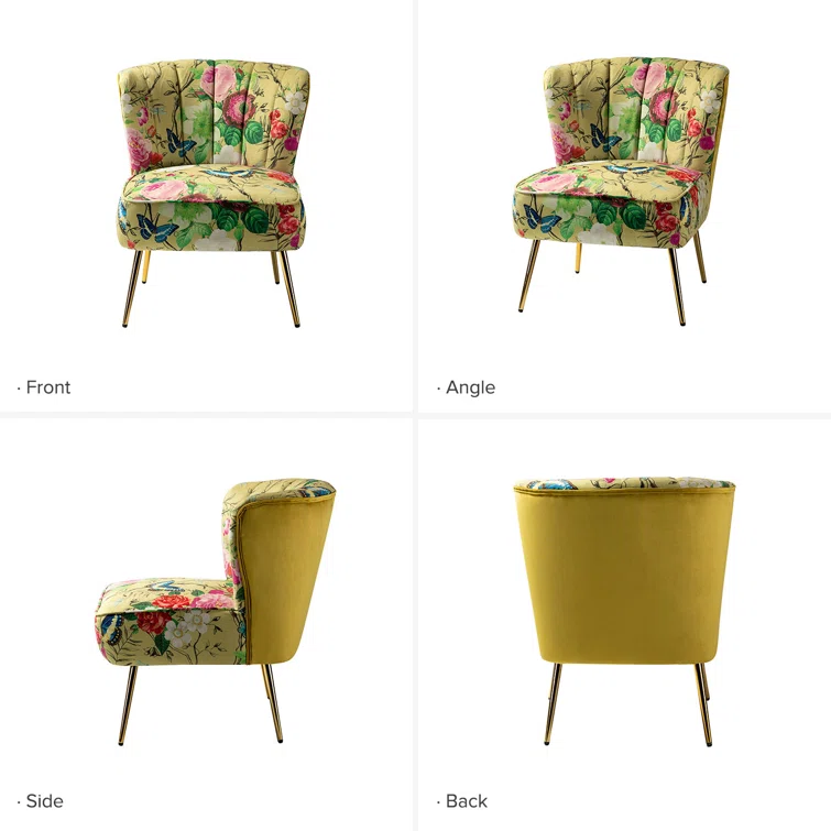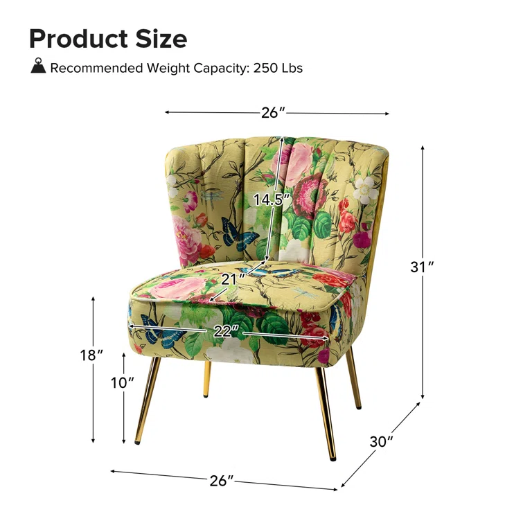 This set of two barrel chairs is full of elegance and glam appeal with patterned upholstery and metal legs. Each piece has a solid and engineered wood frame, resting on iron legs coated in a golden hue that brings a luxe look to your living room or den. We love the velvet upholstery in a selection of colorful patterns that make these barrel chairs stand out in your space. They also feature vertical channel tufting, a foam fill, and sinuous springs in the seats for added support when relaxing with a good book or chatting with a friend.Hand-curated by Kelly Clarkson.