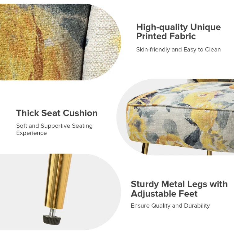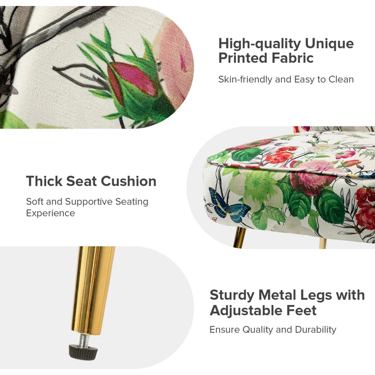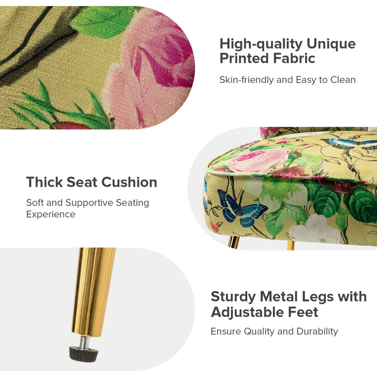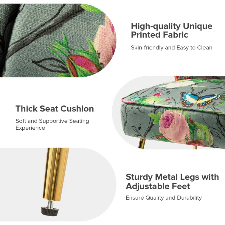 Gold iron legs with a floral pattern add a premium and luxurious feel to the entire chair. You can trust our craftsmanship to make them tough enough to last for years.