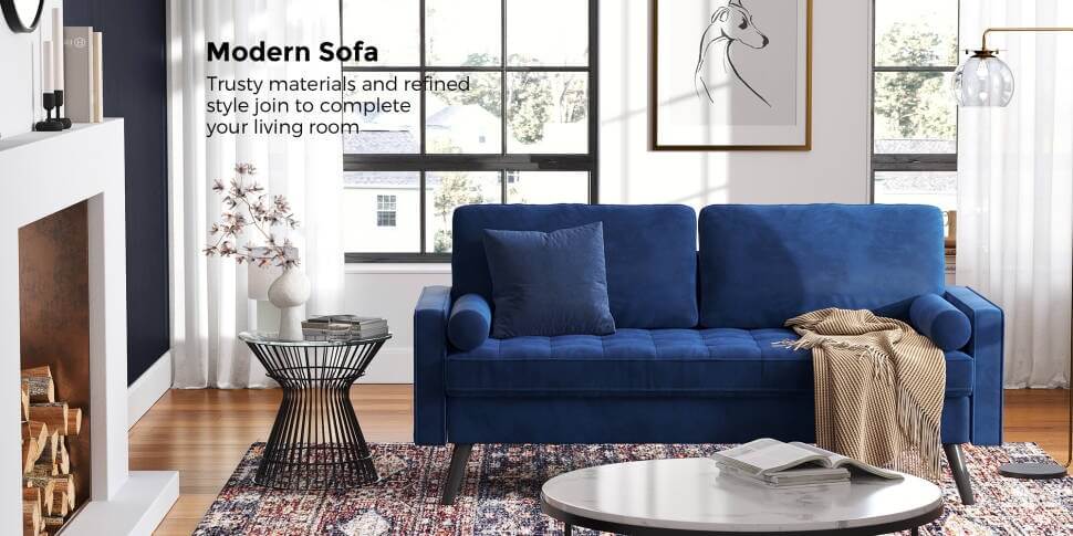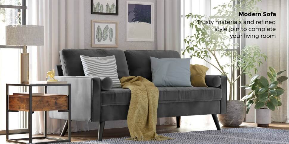 • Here comes a cozy life: comfortably lay on the couch reading a novel? Sitting with your loved one for a binge-watching session? Either way, you choose, this well-padded sofa with skin-friendly velvet fabric will serve its purpose