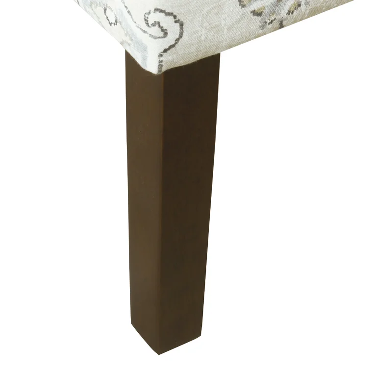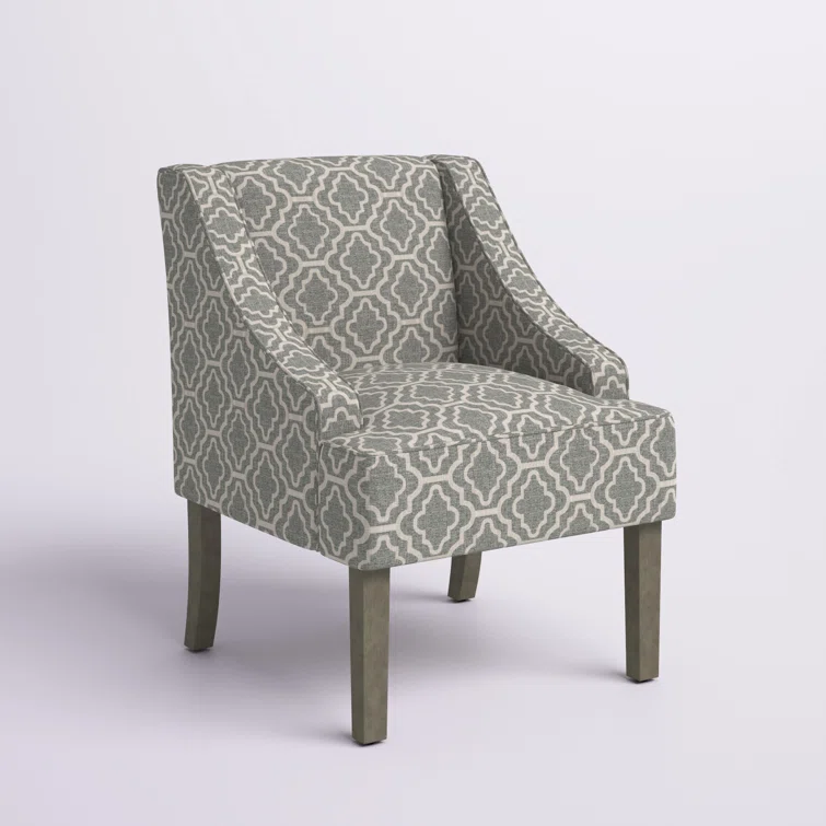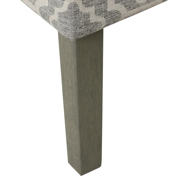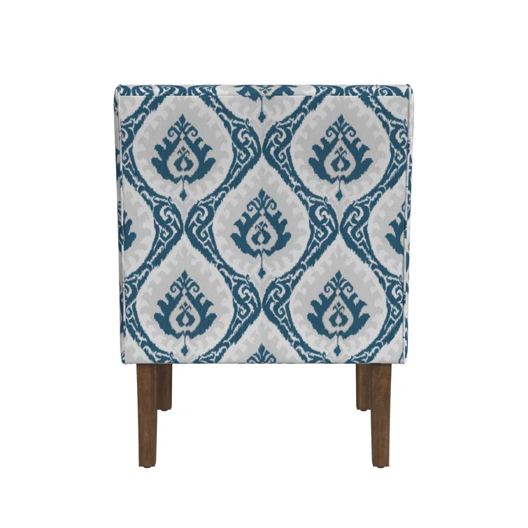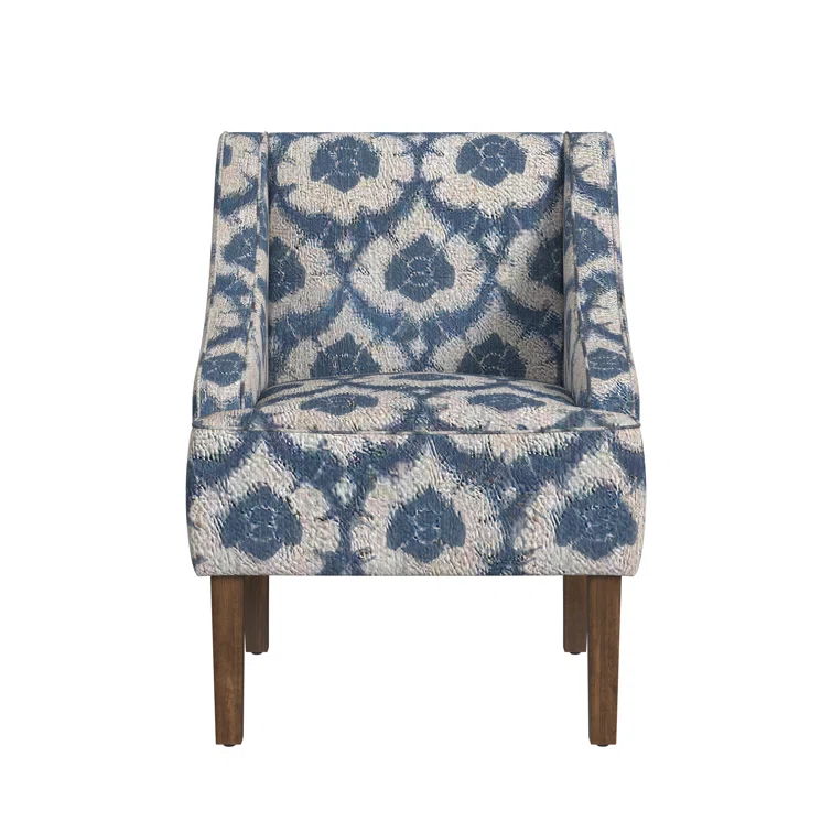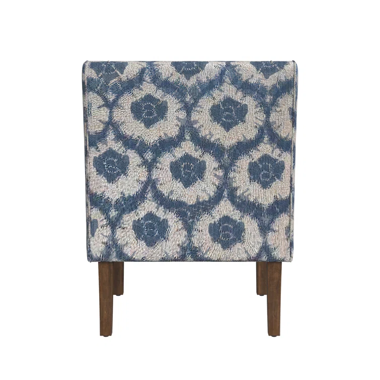 This side chair combines modern design with a playful, boho-inspired print. It's crafted with a solid wood frame with recessed arms and a tight back that rests on solid wood tapered front legs and flared back legs. This chair is upholstered in 100% cotton in your choice of pattern with purposeful fading for a relaxed look. This versatile chair makes a great decorative accent – and easily pulls up to your dining table to provide extra seating in a snap.