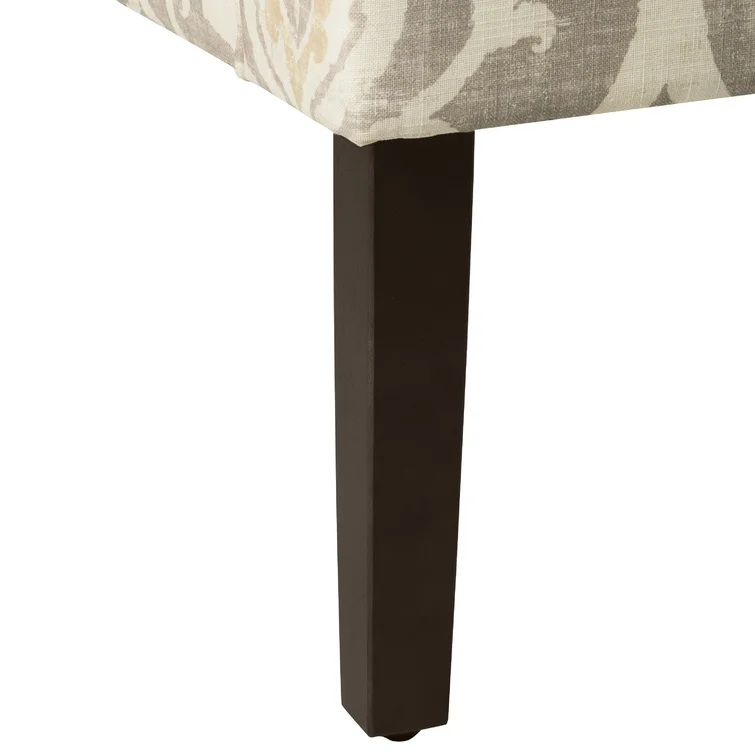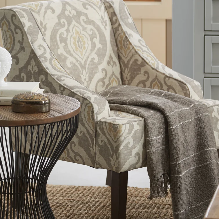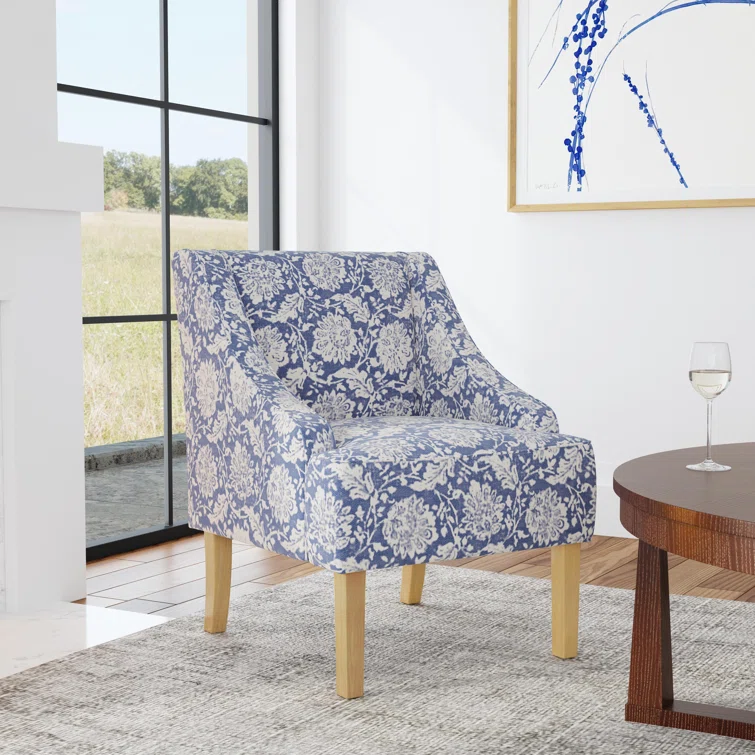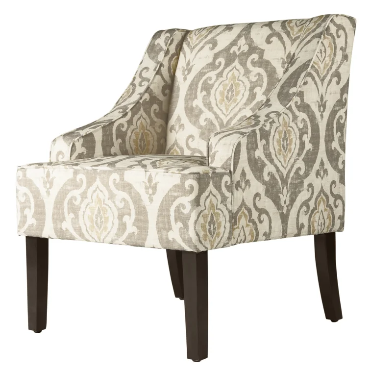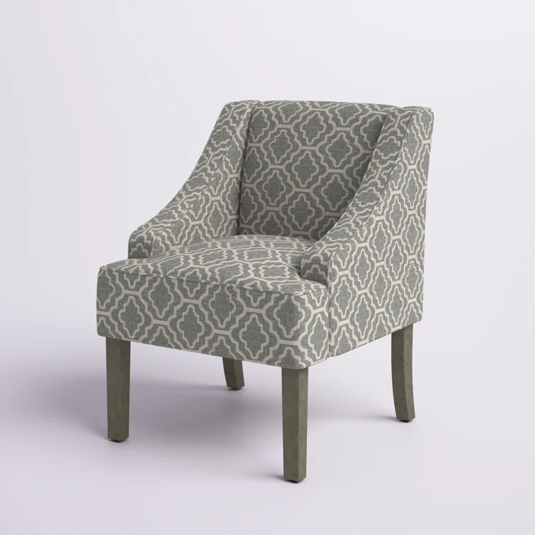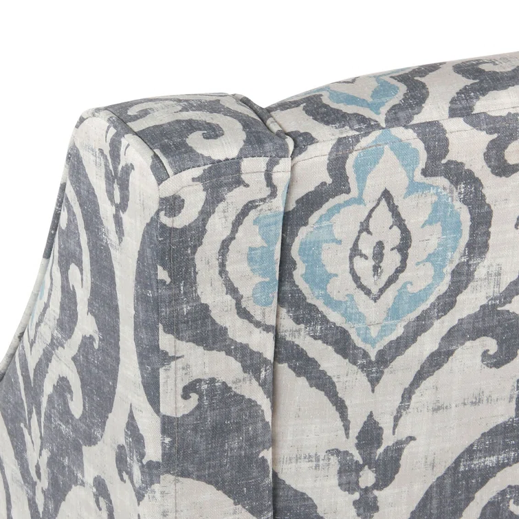 This side chair combines modern design with a playful, boho-inspired print. It's crafted with a solid wood frame with recessed arms and a tight back that rests on solid wood tapered front legs and flared back legs. This chair is upholstered in 100% cotton in your choice of pattern with purposeful fading for a relaxed look. This versatile chair makes a great decorative accent – and easily pulls up to your dining table to provide extra seating in a snap.
