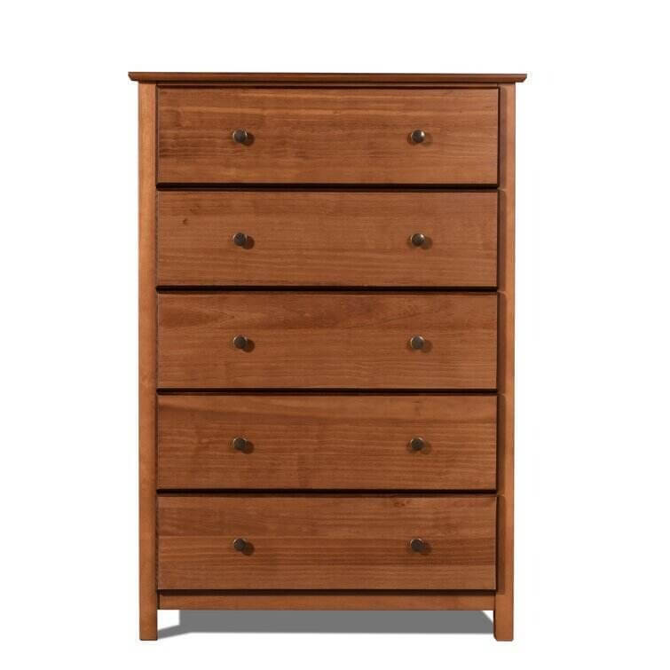 Attractive metal knobs, and elegant Shaker style: this luxurious-looking chest has what it takes to give your bedroom that refined touch. Made of 100% Solid Pinewood, this chest features a sturdy construction that can last for years. Featuring an eco-friendly design, this piece has minimal impact on the environment as all wood comes from renewable forests.