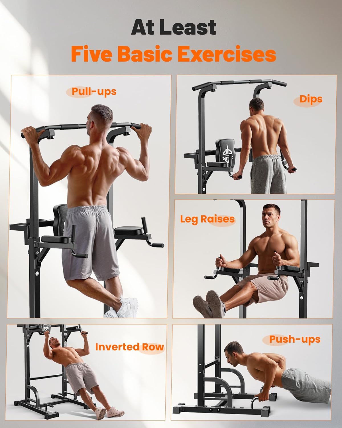 - 【Multi Function】Our power tower supports a variety of upper body and strength workouts, such as pull-up, push-up, leg/knee raise and dips. Multiple handles in pull-up frame also allows you to perform more postures and exercises. Good choice for strengthen and shape your whole body.