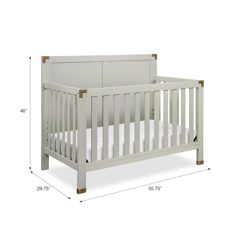 - Assembled Crib Dimensions: 55.75"L x 29.75" W x 46" H. Net weight: 61.73 lbs. Ships in one easy-to-handle box with all parts, tools, and instructions included for fast assembly. 1-year limited warranty and reliable customer service support.