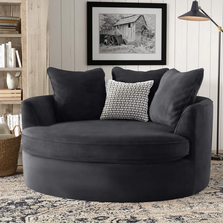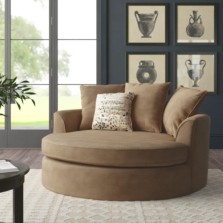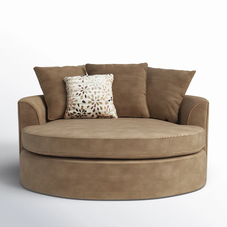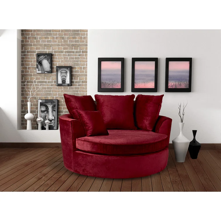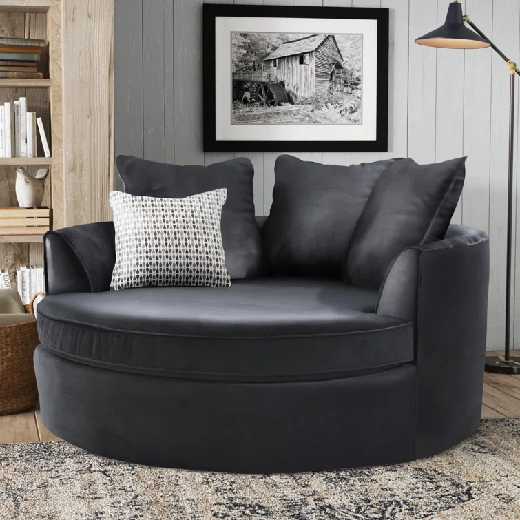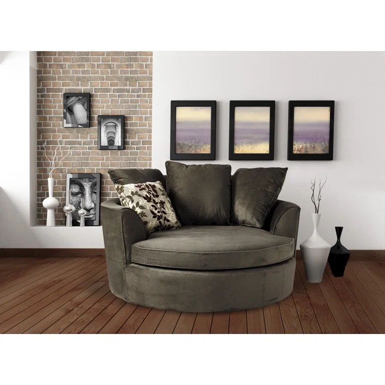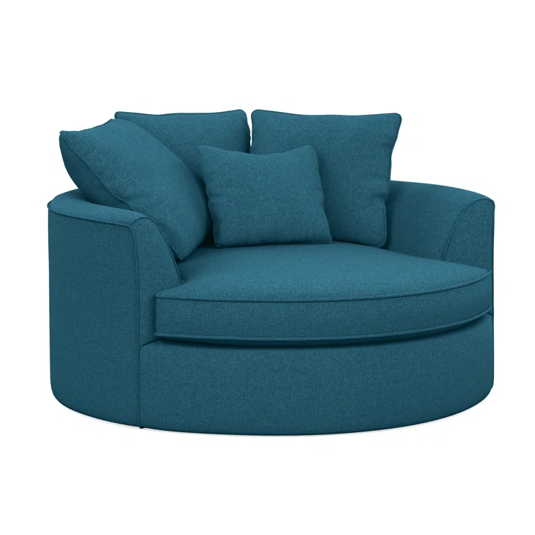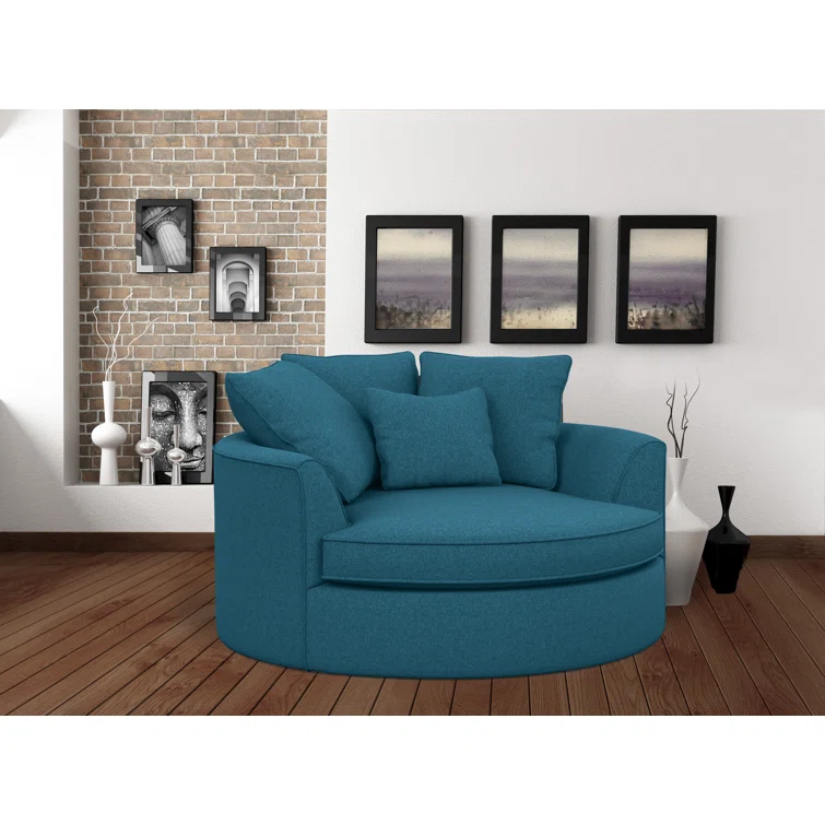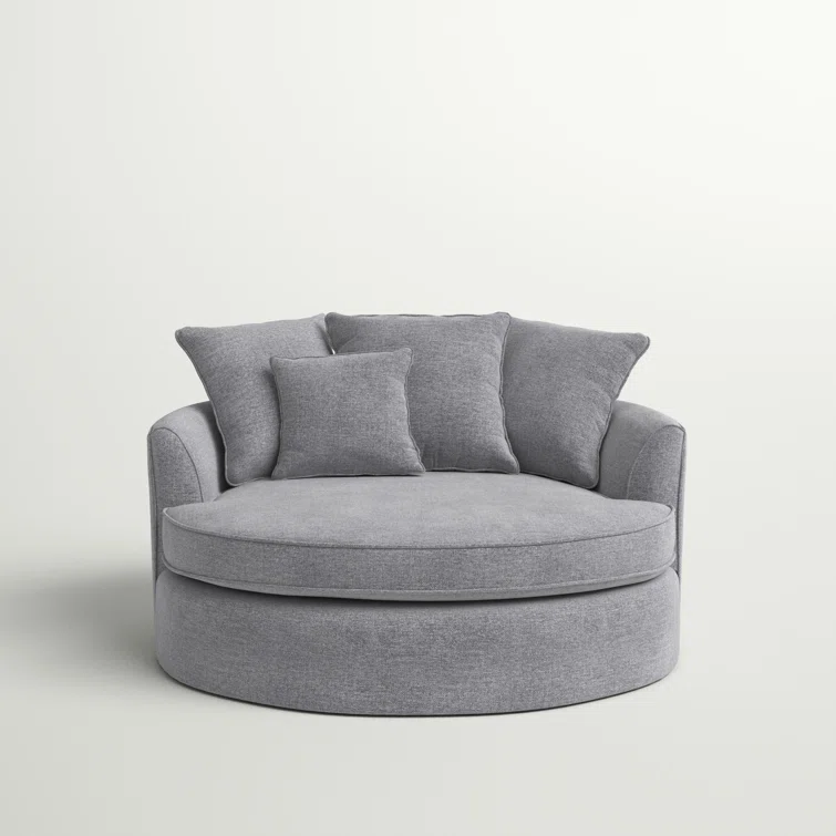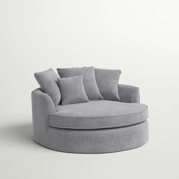 This barrel chair is great for curling up beside your loved ones or offering lots of elbow room as you lounge. It's crafted with a kiln-dried solid and engineered wood frame and is upholstered in stain-resistant polyester blend fabric in the solid hue of your choice. Its rounded back curves around the sides to act as an arm. The seat is filled with fiber-wrapped foam to support you as you relax. Plus, its seat and back cushions are removable, so it's easy to vacuum, while the cushions are reversible to encourage even wear. This chair includes 1 toss pillow for added texture. It has a weight capacity of 400. No assembly is required, so your new chair is ready to enjoy right away.
