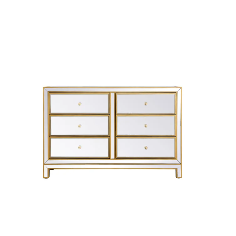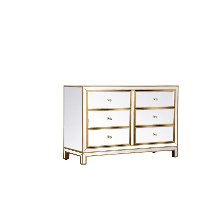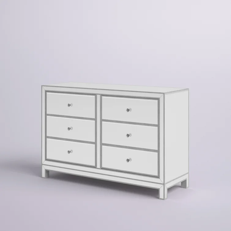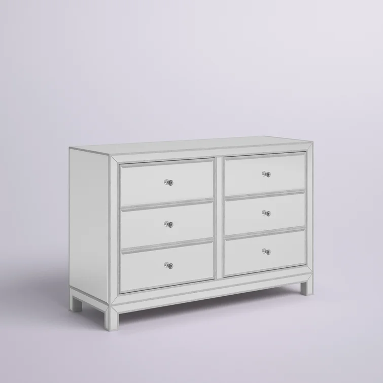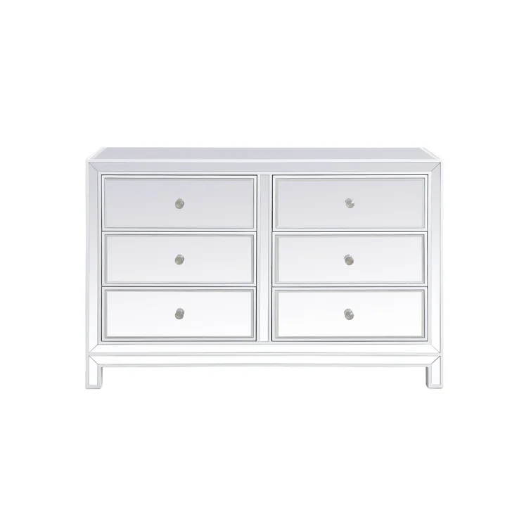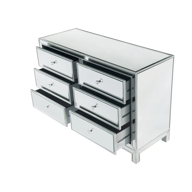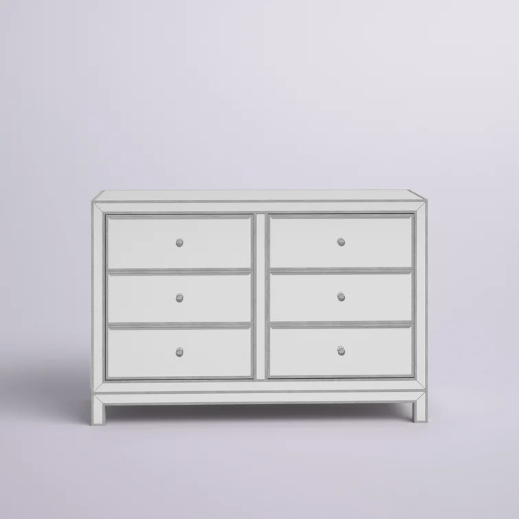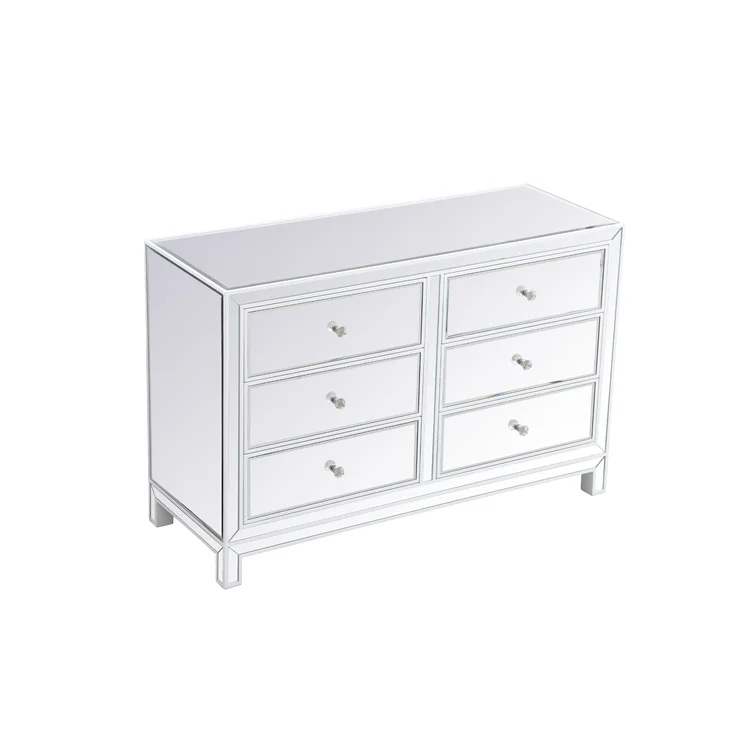 This 6-drawer dresser fills your bedroom with glam style and gives you a spot to stash blankets, linens, and clothes. It's crafted from solid and engineered wood and features a streamlined silhouette with mirrored paneling for an eye-catching look in your space. Six drawers reveal plenty of room to tuck away anything you want out of sight. A similarly mirrored top offers a spot to display accent pieces. A wall anchor is included for added safety. Best of all, this dresser arrives fully assembled.