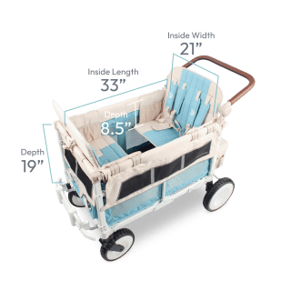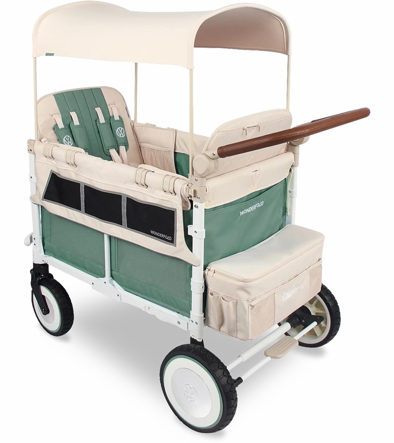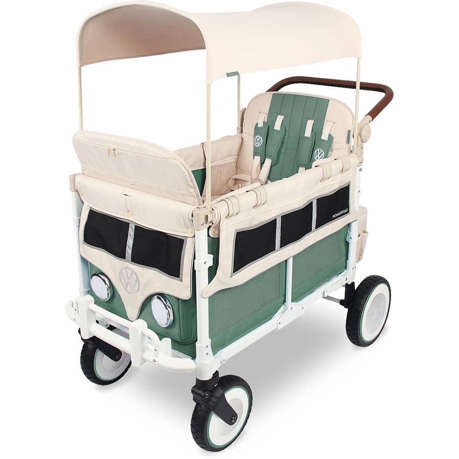 Stroller wagons just got a little more groovy. Inspired by the vintage VW bus, our new special edition stroller wagon will fulfill your nostalgic fantasies with all those classic WonderFold elements. It includes features like the classic VW bumper, functioning headlights, and retro all-terrain XL wheels!