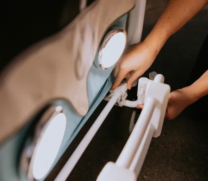 - Adjustable, vegan leather handlebar for parents of varying heights