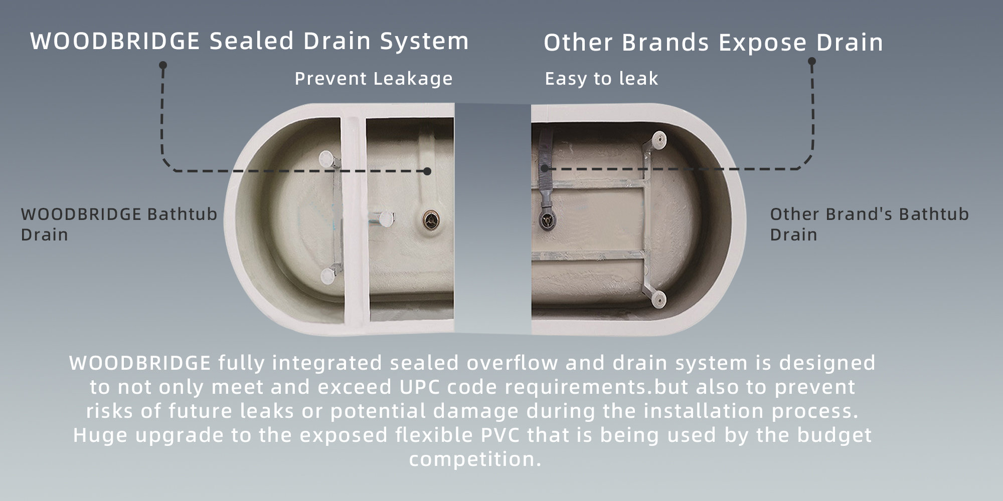 - Premium quality construction: The Woodbridge bathtub is made out of 100% high lucite acrylic and reinforced with Ashland resin & fiberglass. All of these are top quality material which is rarely used by others due to a relatively high cost.
