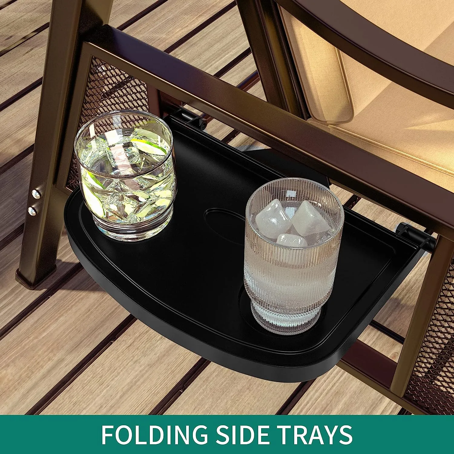 - TWO TRAYS: The trays on both sides can be opened for your drinks or snacks, which won't shake because of the swing of the swing chair. Enjoy a pleasant afternoon on the swing chair