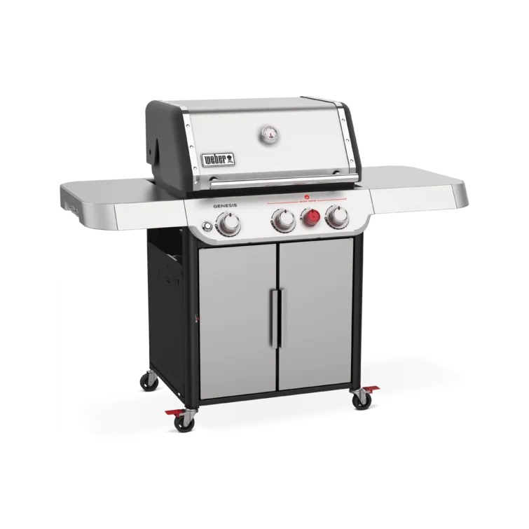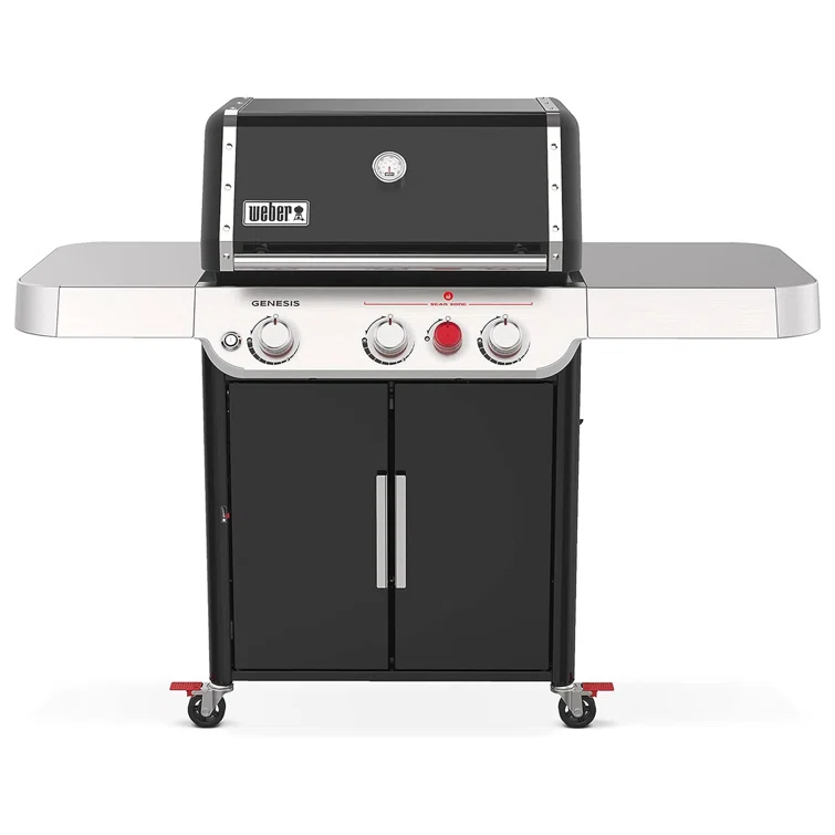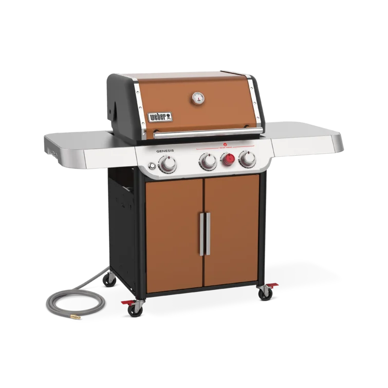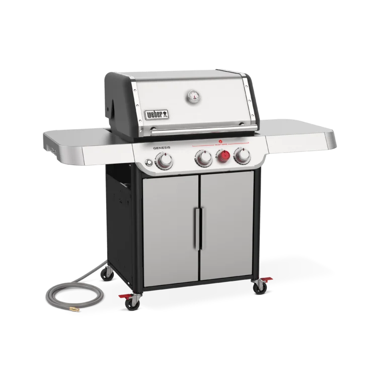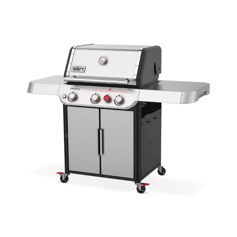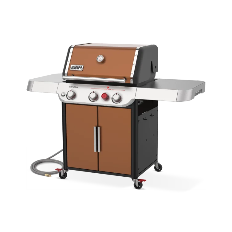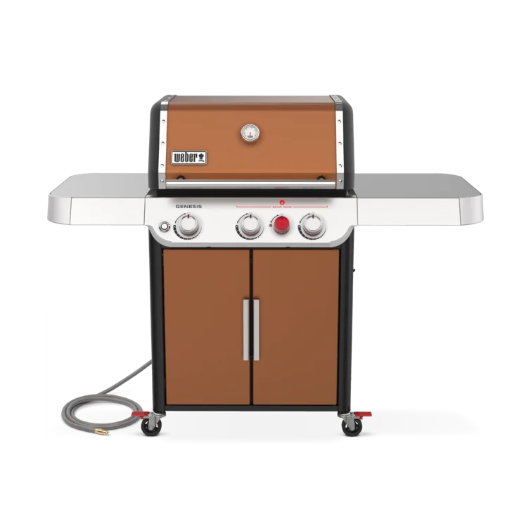 The 3-burner, porcelain-enamel Genesis E-325 with side burner, delivers legendary Weber quality, performance and durability in a grill you can rely on to make outdoor cooking for family and friends easy and enjoyable. The PureBlu burner system sets this grill apart from the pack – featuring unique, tapered burner tubes that generate consistent pressure and flames and deliver even heat across the grilling surface. Flames are directed above the raised gas ports, while food debris falls below, minimizing clogging and ensuring the grill lights every time.